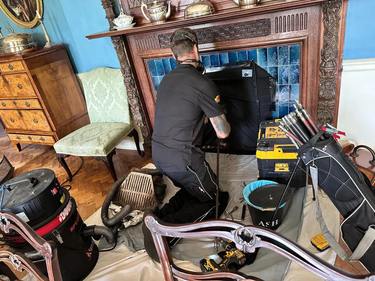 We use a tailored mix of rotary power sweeping, manual sweeping, and high-grade dust extraction equipment to achieve an effective clean without damaging your chimney or flue, while protecting indoor air quality.